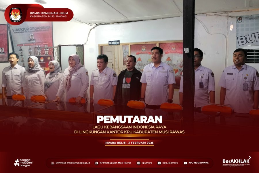 #TemanPemilih, Menindaklanjuti Surat Kementeriaan Sekretariat Negara Republik Indonesia Nomor : B-32/KSN/TU.00/01/2025 dan Surat KPU Republik Indonesia Nomor : 350/PK.02-SD/03/2025 Perihal Pemberitahuan Untuk Memperdengarkan Lagu Kebangsaan Indonesia Raya dan Naskah lainnya, Komisioner dan Sekretariat KPU Kabupaten Musi Rawas melakukan pembacaan naskah Pancasila di Kantor KPU Kabupaten Musi Rawas (4/2/2025) ..