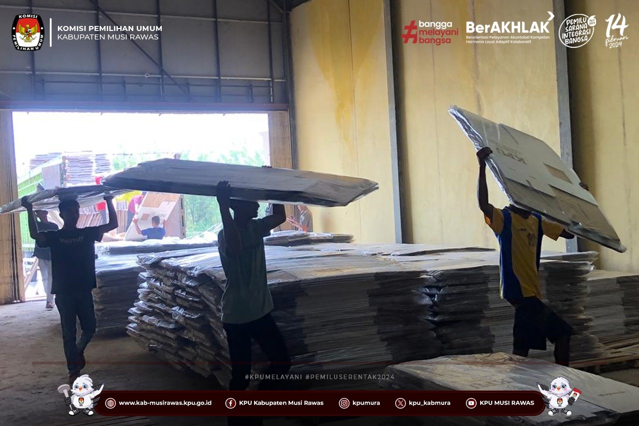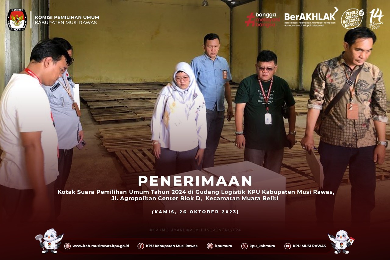 #TemanPemilih, KPU Kabupaten Musi Rawas menerima Kotak Suara yang akan digunakan pada Pemilihan Umum Tahun 2024 di Gudang Logistik KPU Kabupaten Musi Rawas yang beralamat di Jl. Agropolitan Center Blok. D, Kecamatan Muara Beliti (26/10/2023) ..