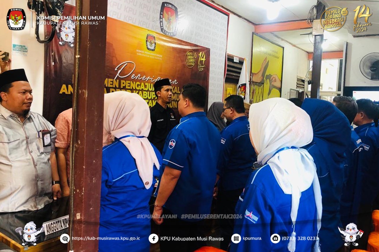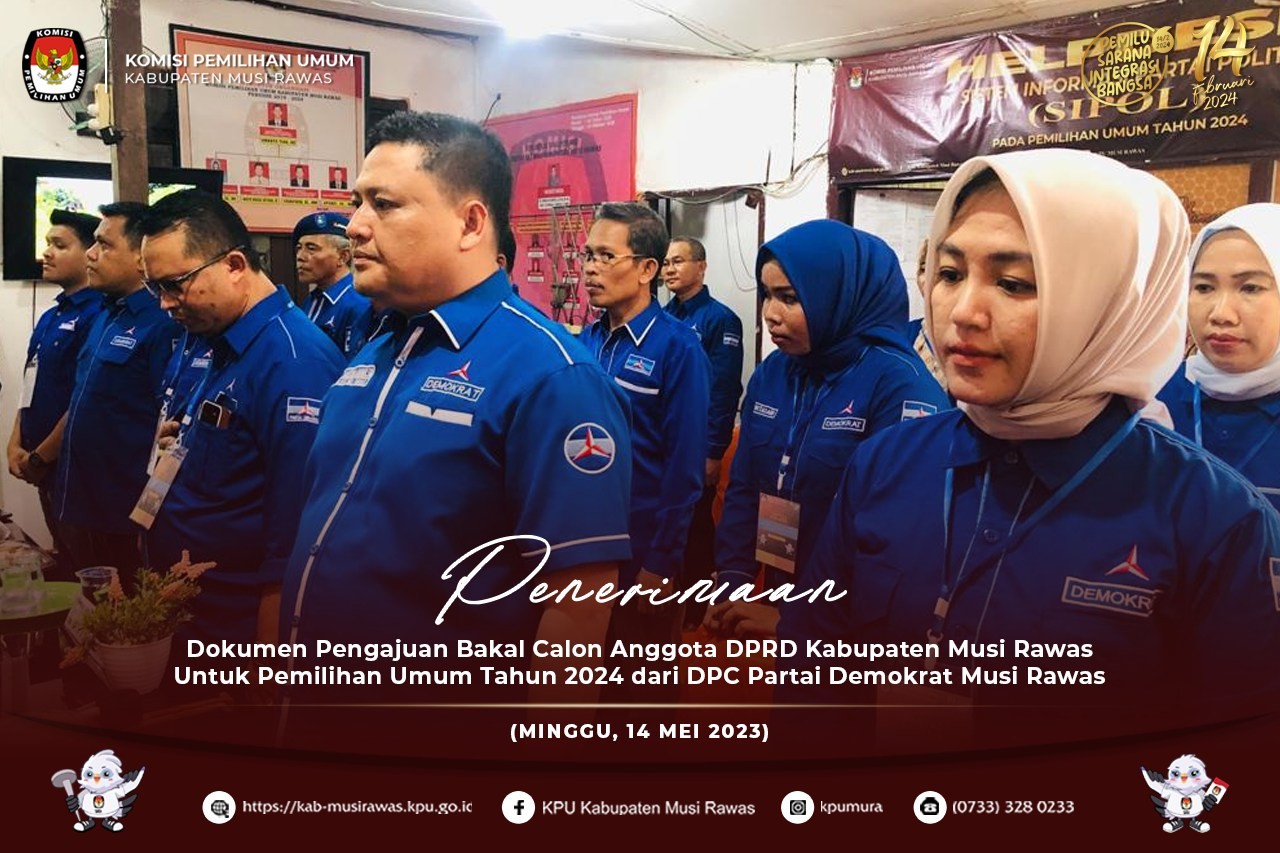 #TemanPemilih, KPU Kabupaten Musi Rawas menerima kehadiran Pengurus DPC Partai Demokrat Musi Rawas di Kantor KPU Kabupaten Musi Rawas terkait penerimaan berkas Bakal Calon Anggota Dewan Perwakilan Rakyat Daerah (DPRD) Kabupaten Musi Rawas Untuk Pemilihan Umum Tahun 2024 (14/5/2023) . ..