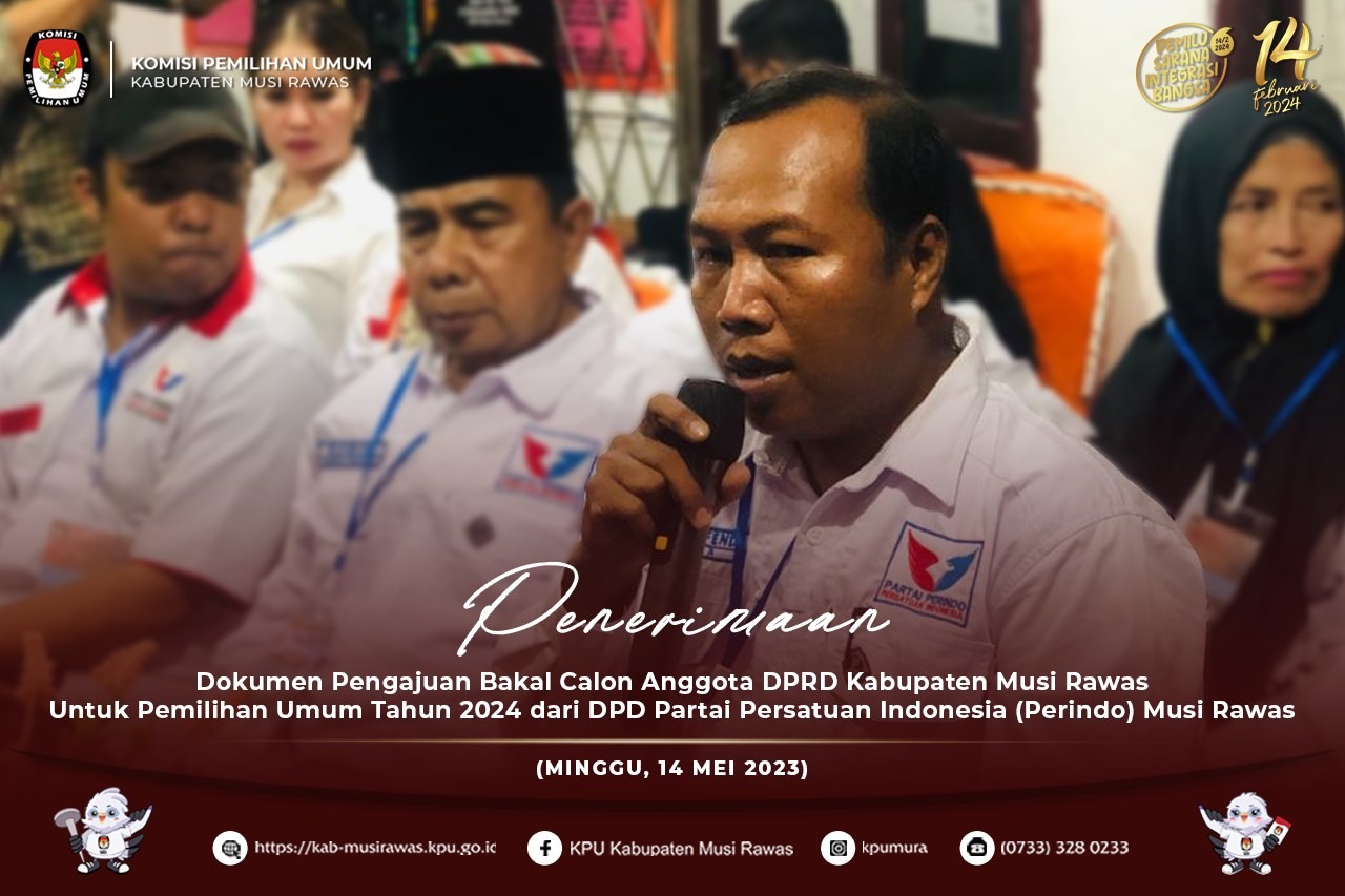 #TemanPemilih, KPU Kabupaten Musi Rawas menerima kehadiran Pengurus DPD Partai Persatuan Indonesia (Perindo) Musi Rawas di Kantor KPU Kabupaten Musi Rawas terkait penerimaan berkas Bakal Calon Anggota Dewan Perwakilan Rakyat Daerah (DPRD) Kabupaten Musi Rawas Untuk Pemilihan Umum Tahun 2024 (14/5/2023) . ..