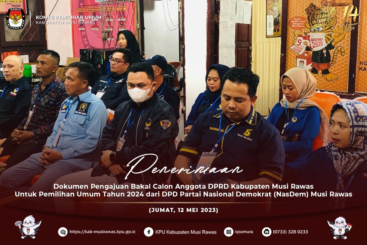 Penerimaan Pengajuan Bakal Calon Anggota DPRD Kabupaten Musi Rawas untuk Pemilu 2024 dari Partai Nasional Demokrat (Nasdem)