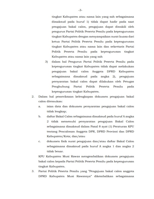 PENGAJUAN BAKAL CALON ANGGOTA DPRD KABUPATEN MUSI RAWAS UNTUK PEMILU 2024