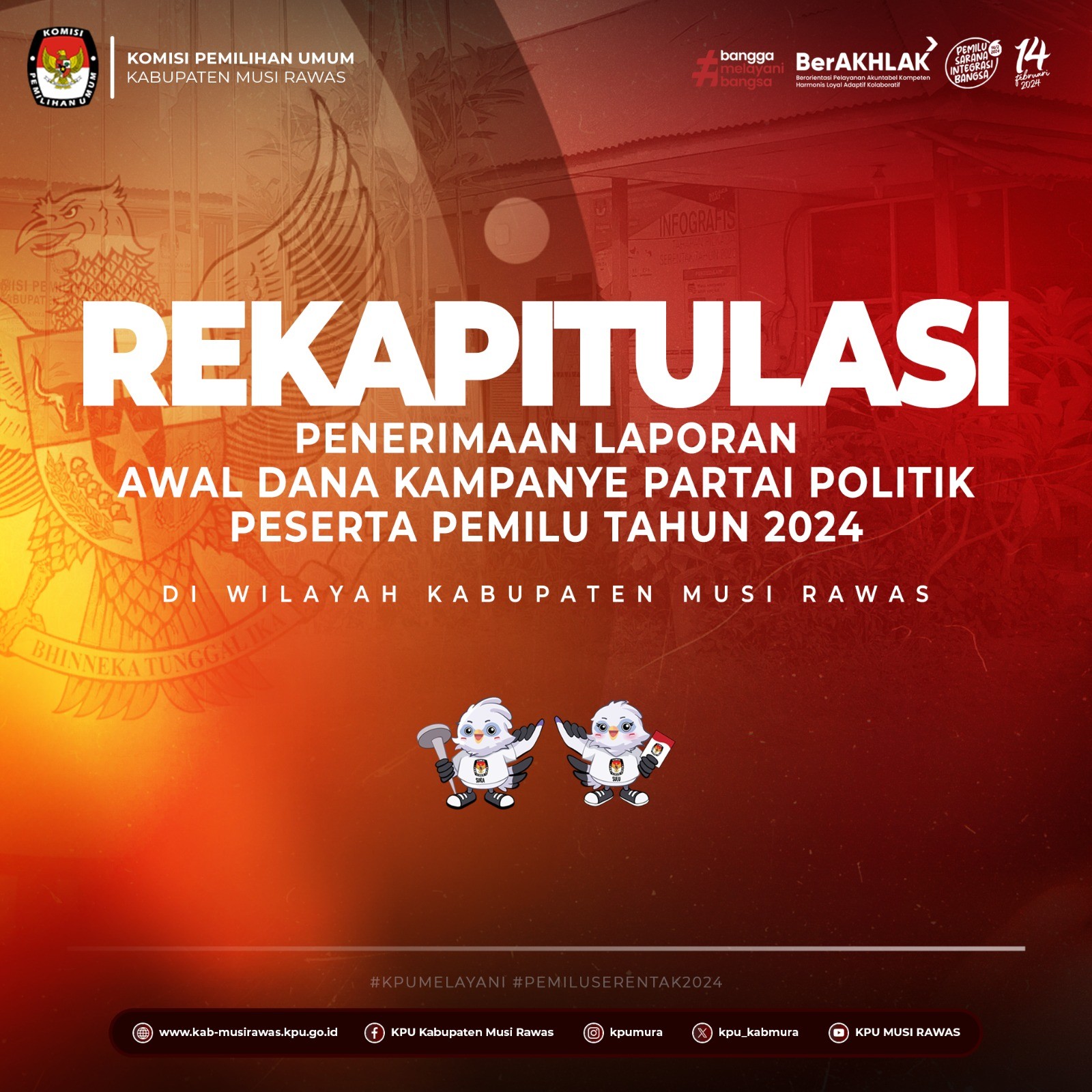 Berikut kami umumkan Laporan Awal Dana Kampanye LADK) Partai Politik yang telah diterima oleh KPU Kabupaten Musi Rawas pada masa penerimaan awal yaitu tanggal 7 Januari 2024 dan masa perbaikan tgl 8-12 Januari 2024. Berikut LADK masing-masing Partai Politik di wilayah Kabupaten Musi Rawas Pemilu Serentak 2024 yang dapat dilihat di link sbb :