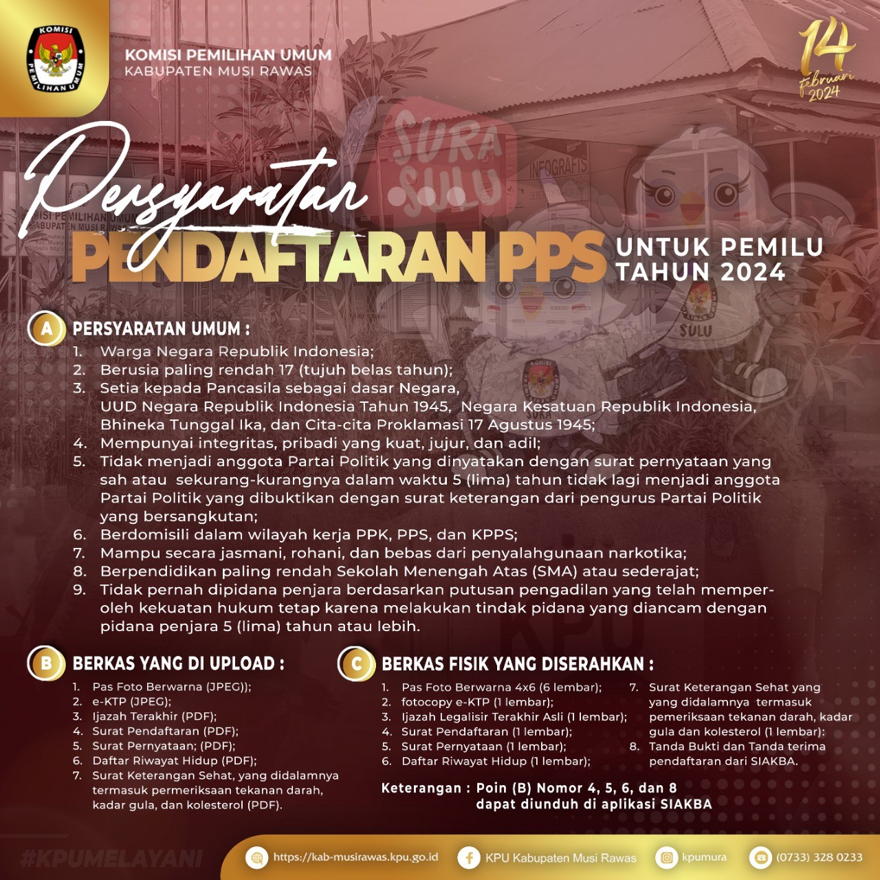 PENGUMUMAN PENERIMAAN PENDAFTARAN PANITIA PEMUNGUTAN SUARA (PPS) UNTUK PEMILU TAHUN 2024 DI KABUPATEN MUSI RAWAS