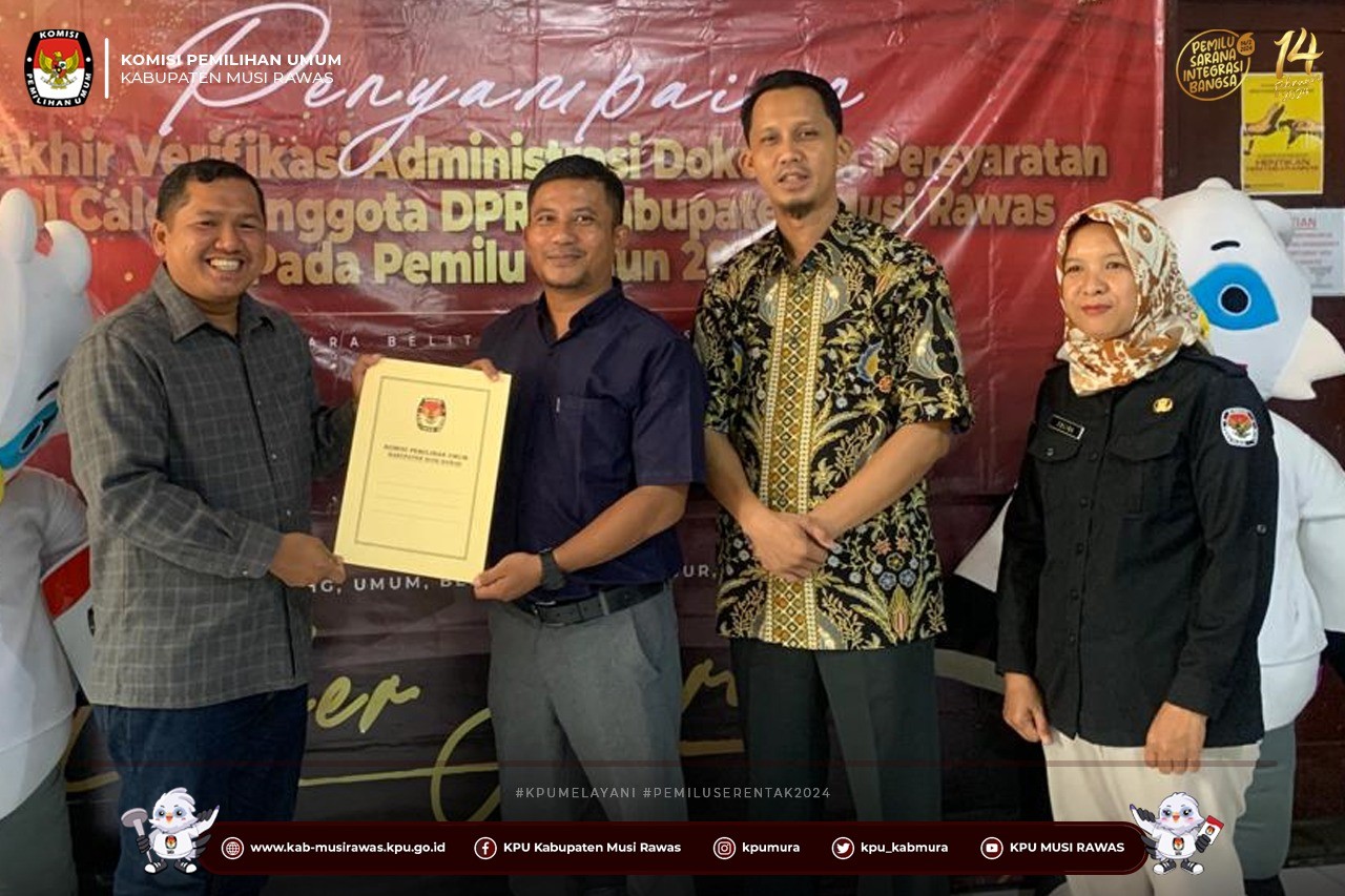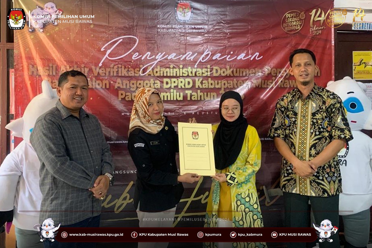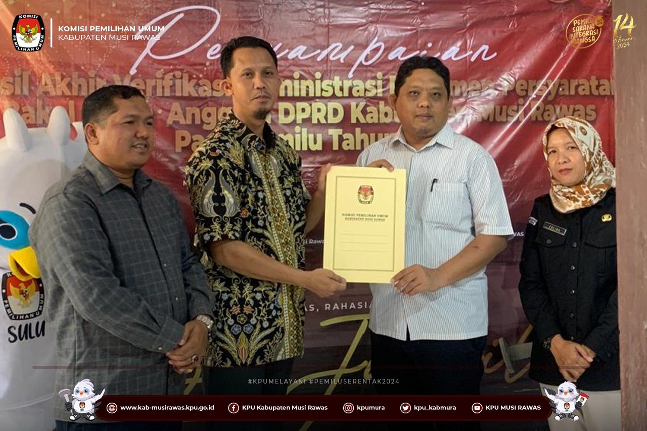 Penyampaian Hasil Akhir Verifikasi Administrasi Bacalon Anggota DPRD Musi Rawas Pemilu 2024