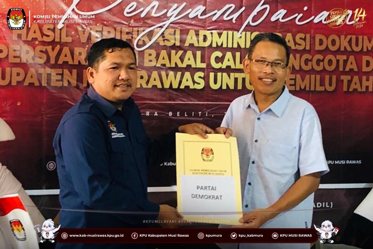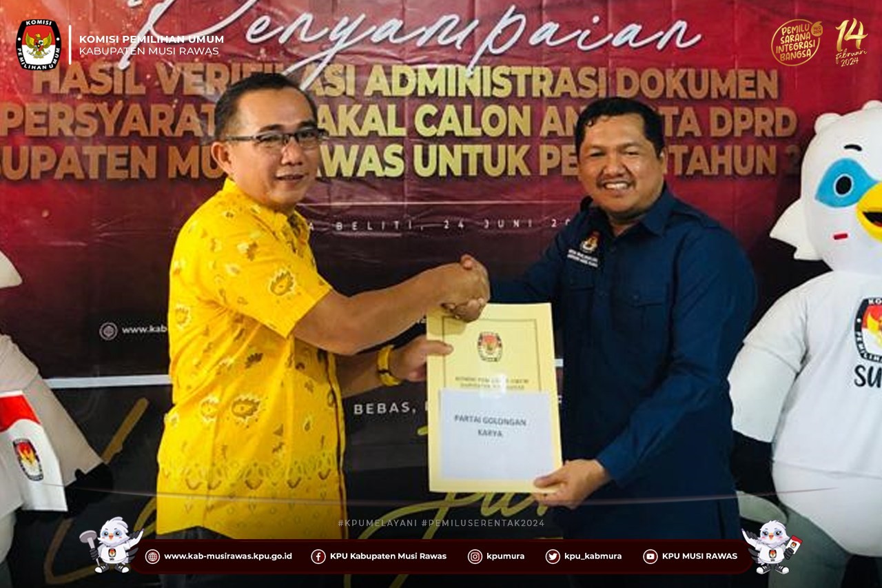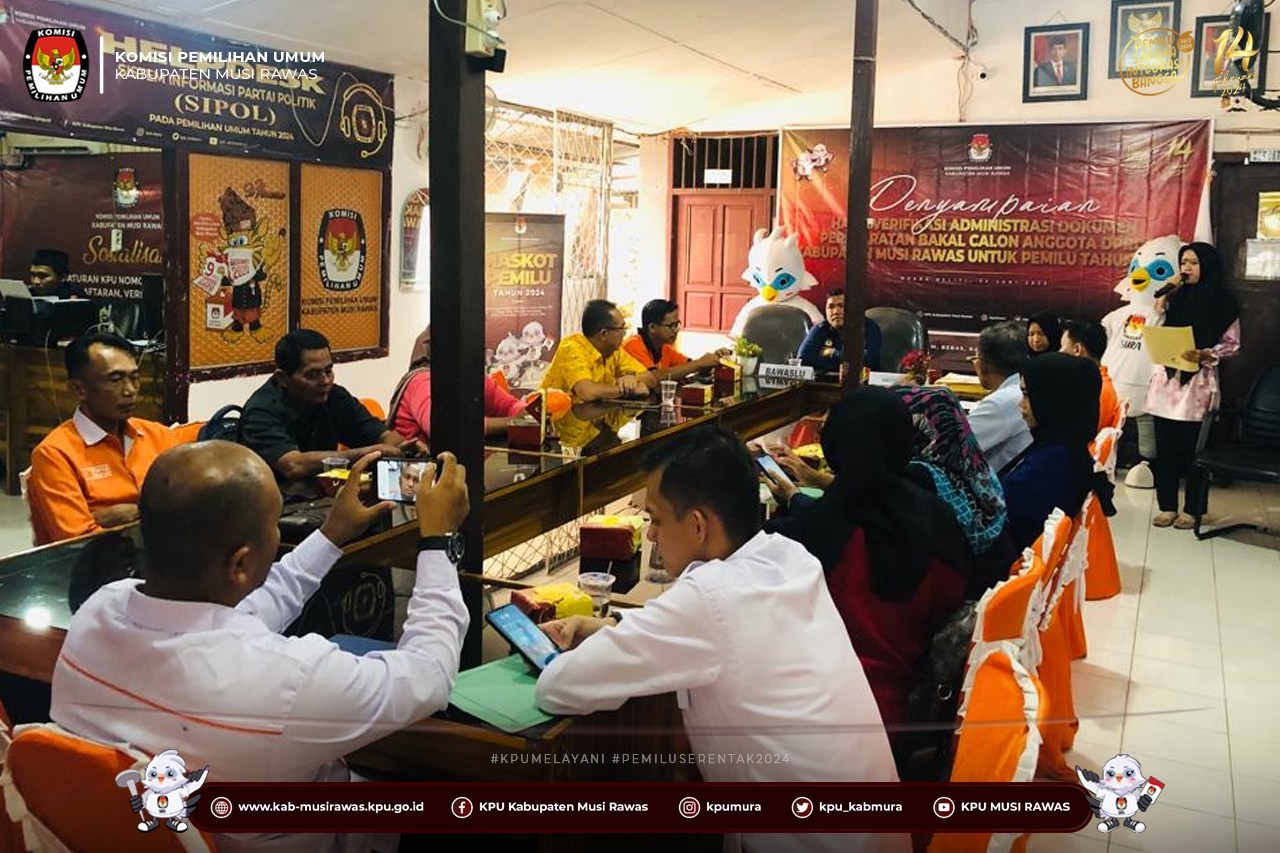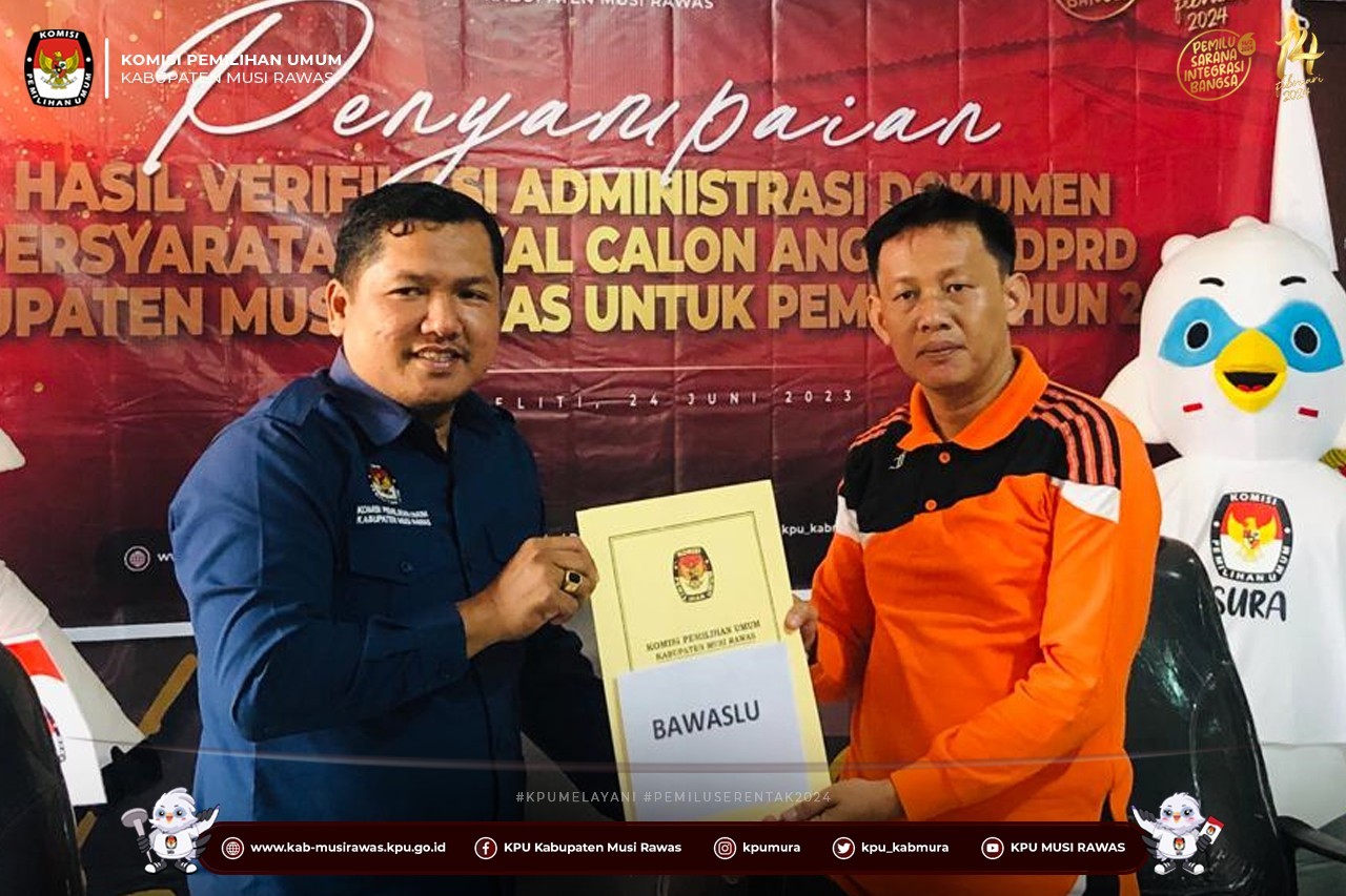 Penyampaian Hasil Verifikasi Administrasi Bakal Calon Anggota DPRD Kabupaten Musi Rawas untuk pemilu 2024 >>>