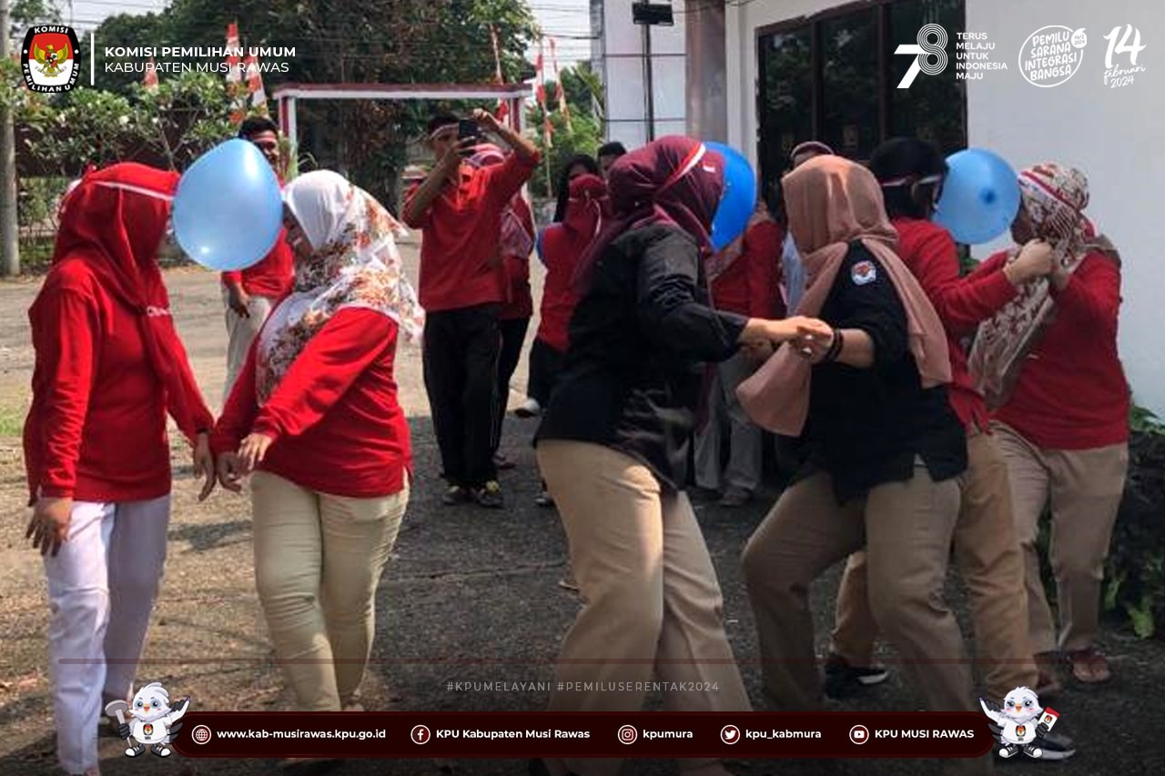#TemanPemilih, Keluarga Besar KPU Kabupaten Musi Rawas mengadakan Kegiatan Perayaan Hari Kemerdekaan Republik Indonesia Ke-78 Tahun dengan menggelar berbagai lomba di lingkungan Kantor KPU Kabupaten Musi Rawas (16/8/2023) ..