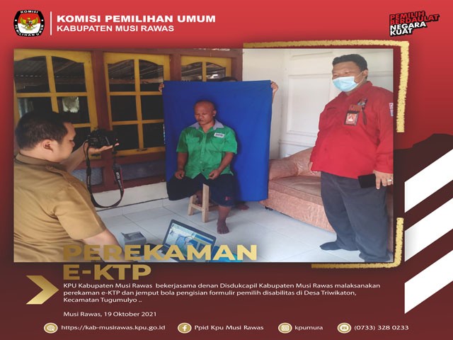 KPU Kabupaten Musi Rawas bekerja sama dengan Disdukcapil Kabupaten Musi Rawas dalam kegiatan perekaman E-KTP sekaligus pengisian formulir pemilih disabilitas. (Selasa, 19 Oktober 2021)