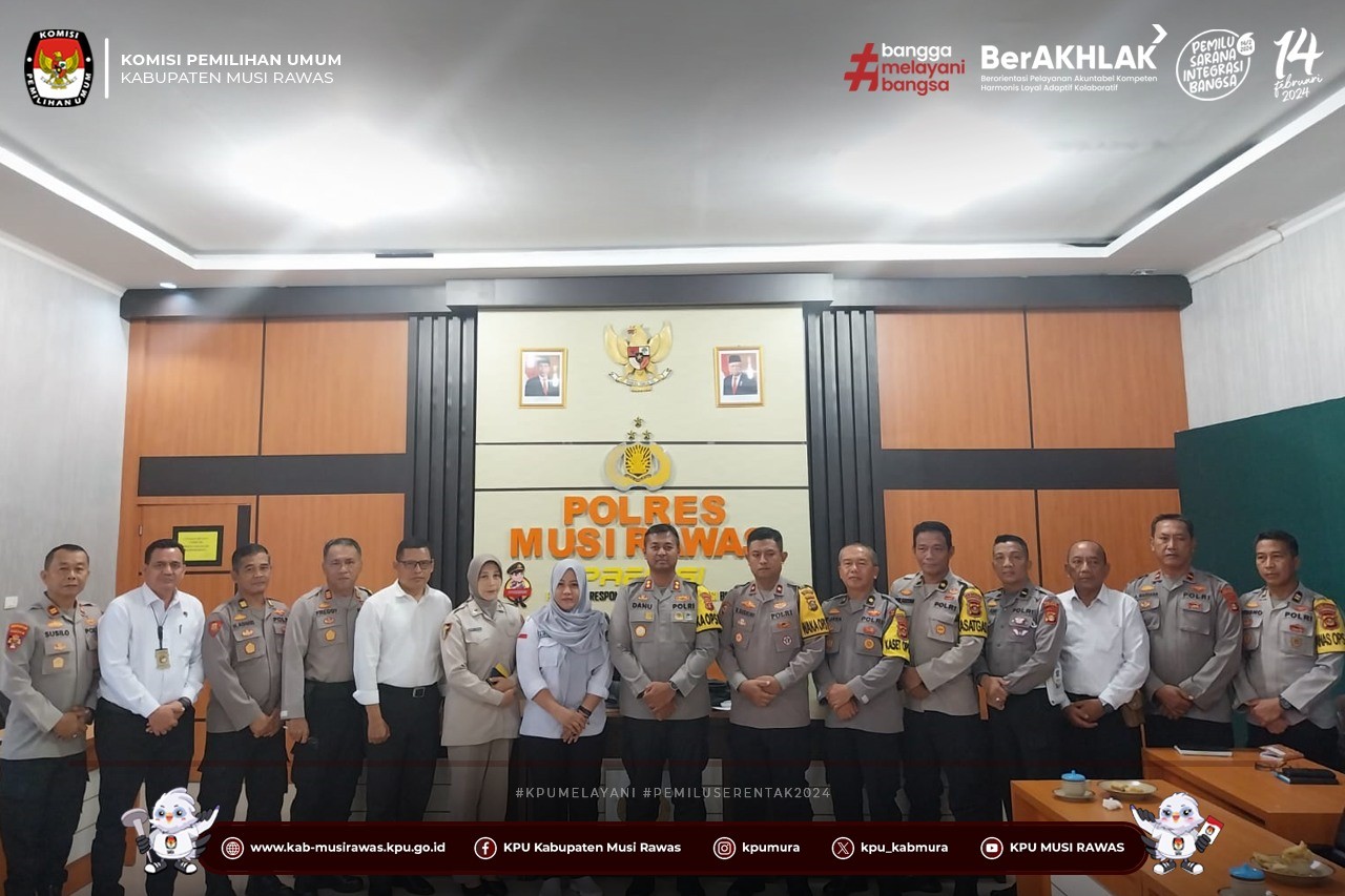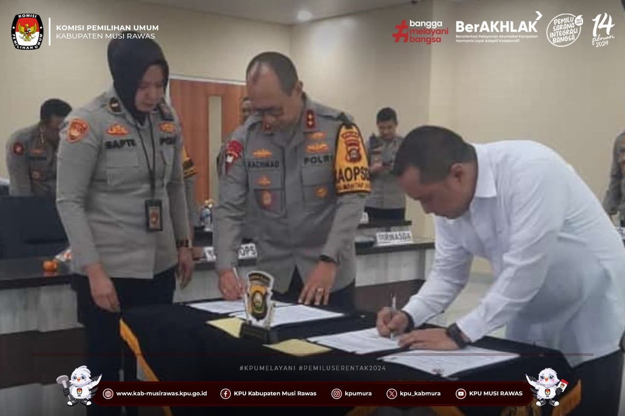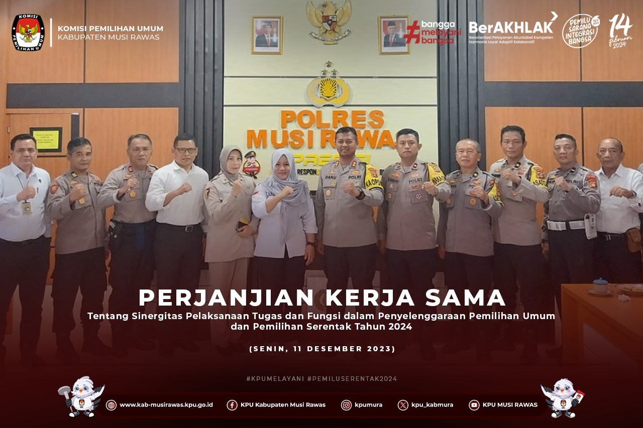 #TemanPemilih, KPU Kabupaten Musi Rawas Mengikuti Kegiatan Perjanjian Kerja Sama Tentang Sinergitas Pelaksanaan Tugas dan Fungsi dalam Penyelenggaraan Pemilihan Umum dan Pemilihan Serentak Tahun 2024 yang di selenggarakan oleh Polda Sumatera Selatan di Polres Musi Rawas secara daring (11/12/2023) ..