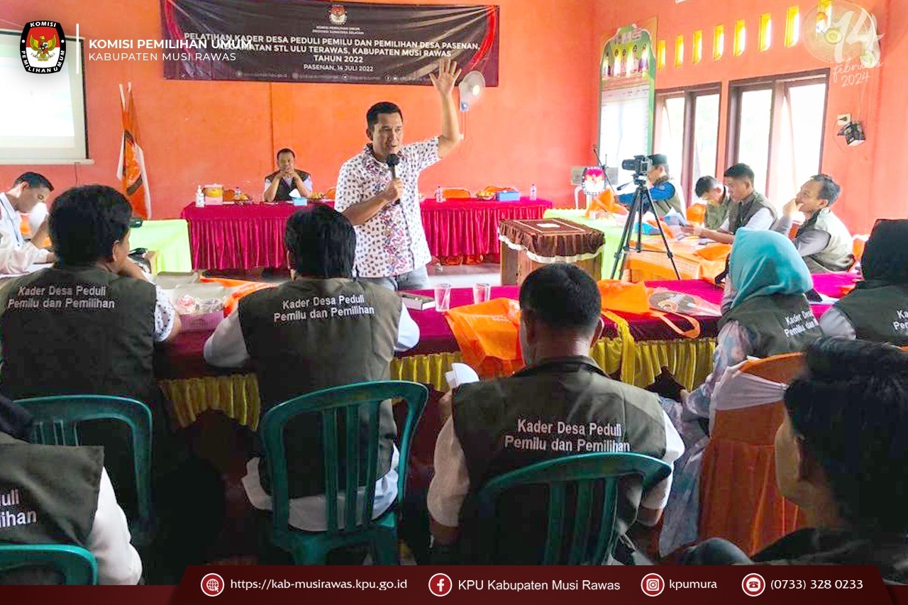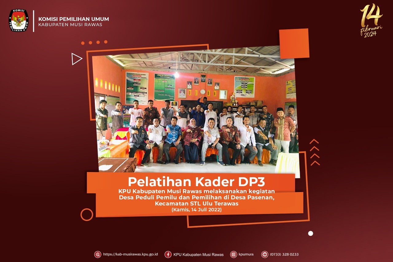 Kamis 14 Juli 2022, KPU Kabupaten Musi Rawas melaksanakan kegiatan Desa Peduli Pemilu dan Pemilihan (DP3) di Desa Pasenan. Kegiatan dihadiri oleh Anggota KPU Provinsi Sumatera Selatan, Wakil Bupati Musi Rawas, Kesbangpol Musi Rawas, Bawaslu Musi Rawas, Camat STL Ulu Terawas dan diikuti oleh 25 orang peserta dari Desa Pasenan. Kegiatan berjalan dengan lancar dan para peserta bersemangat dalam mengikuti kegiatan.