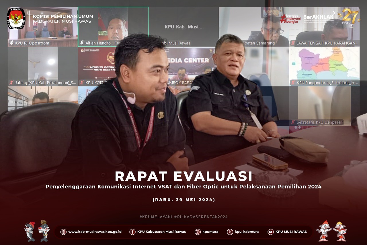#TemanPemilih, KPU Kabupaten Musi Rawas Mengikuti Rapat Evaluasi Penyelenggaraan Komunikasi Internet VSAT dan Fiber Optic untuk Pelaksanaan Pemilihan 2024 secara daring di Kantor KPU Kabupaten Musi Rawas (29/5/2024) ..