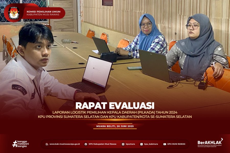 #TemanPemilih, Rapat Evaluasi Laporan Logistik Pemilihan Kepala Daerah (PILKADA) Tahun 2024 bersama KPU Provinsi Sumatera Selatand dan KPU Kabupaten/Kota Se-Sumatera Selatan secara daring di Kantor KPU Kabupaten Musi Rawas (26/6/2025) ..