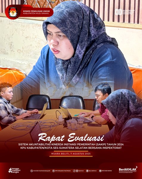 #TemanPemilih, Sekretariat KPU Kabupaten Musi Rawas Mengikuti Rapat Evaluasi SAKIP Tahun 2024 KPU Kabupaten/Kota Se-Sumsel Bersama Inspektorat secara daring di Kantor KPU Kabupaten Musi Rawas (7/8/2025) ..