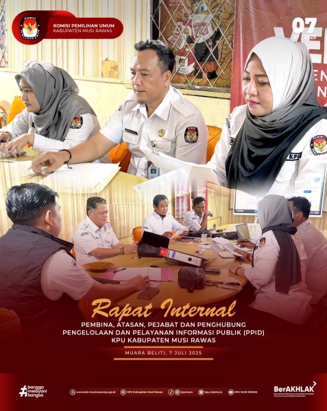 #TemanPemilih, Pembina, Atasan, Pejabat, dan Penghubung Pengelola dan Pelayanan Informasi Publik (PPID) melaksanakan Rapat Internal di Kantor KPU Kabupaten Musi Rawas (7/7/2025) ..
