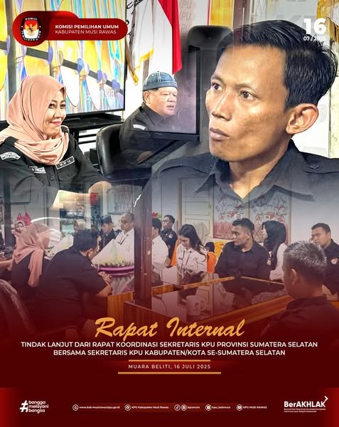 #TemanPemilih, KPU Kabupaten Musi Rawas melaksanakan kegiatan Rapat Internal dari tindak lanjut Rapat Koordinasi Sekretaris KPU Provinsi Sumatera Selatan dan Sekretaris KPU Kabupaten/Kota Se-Sumatera Selatan secara daring pada tanggal 15/7/2025 ..