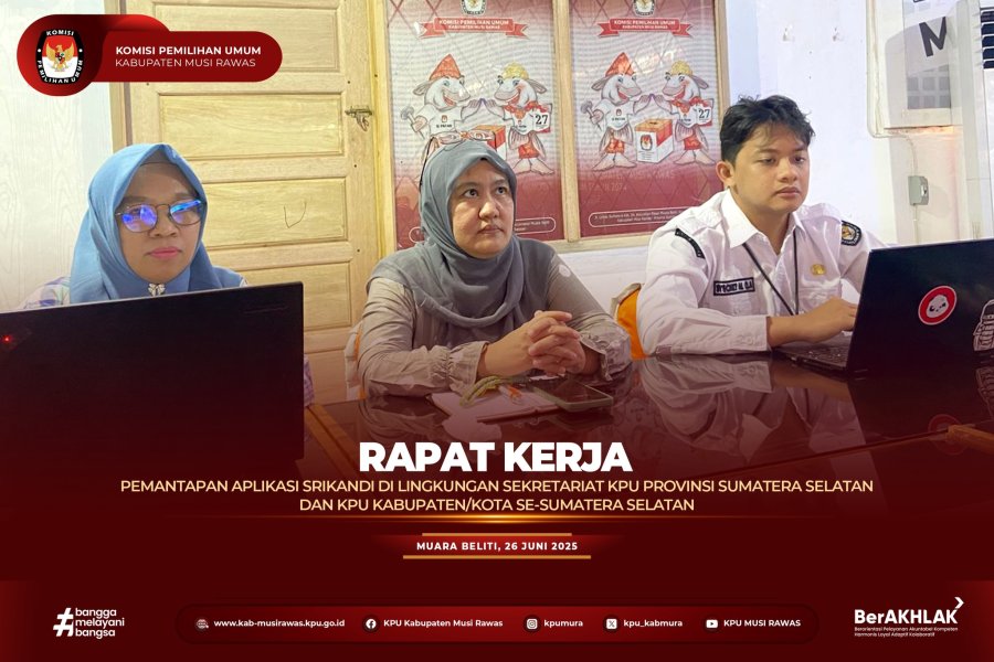 #TemanPemilih, Sekretariat KPU Kabupaten Musi Rawas mengikuti Rapat Kerja Pemantapan Aplikasi Srikandi di Lingkungan Sekretariat KPU Provinsi dan KPU Kabupaten/Kota se Sumatera Selatan secara daring di Kantor KPU Kabupaten Musi Rawas (26/6/2025) ..