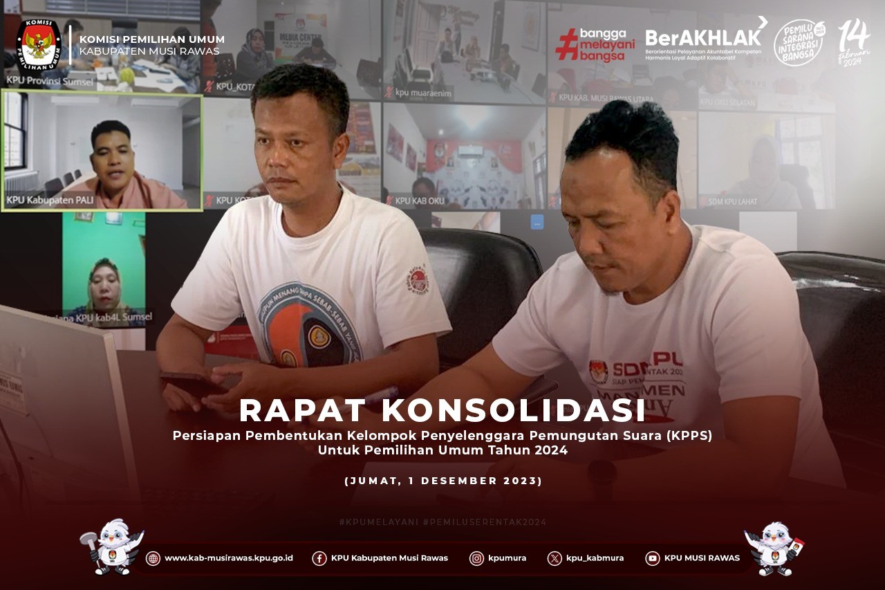#TemanPemilih, KPU Kabupaten Musi Rawas Mengikuti Rapat Konsolidasi Persiapan Pembentukan Kelompok Penyelenggara Pemungutan Suara (KPPS) Untuk Pemilihan Umum Tahun 2024 secara daring (1/12/2023) ..