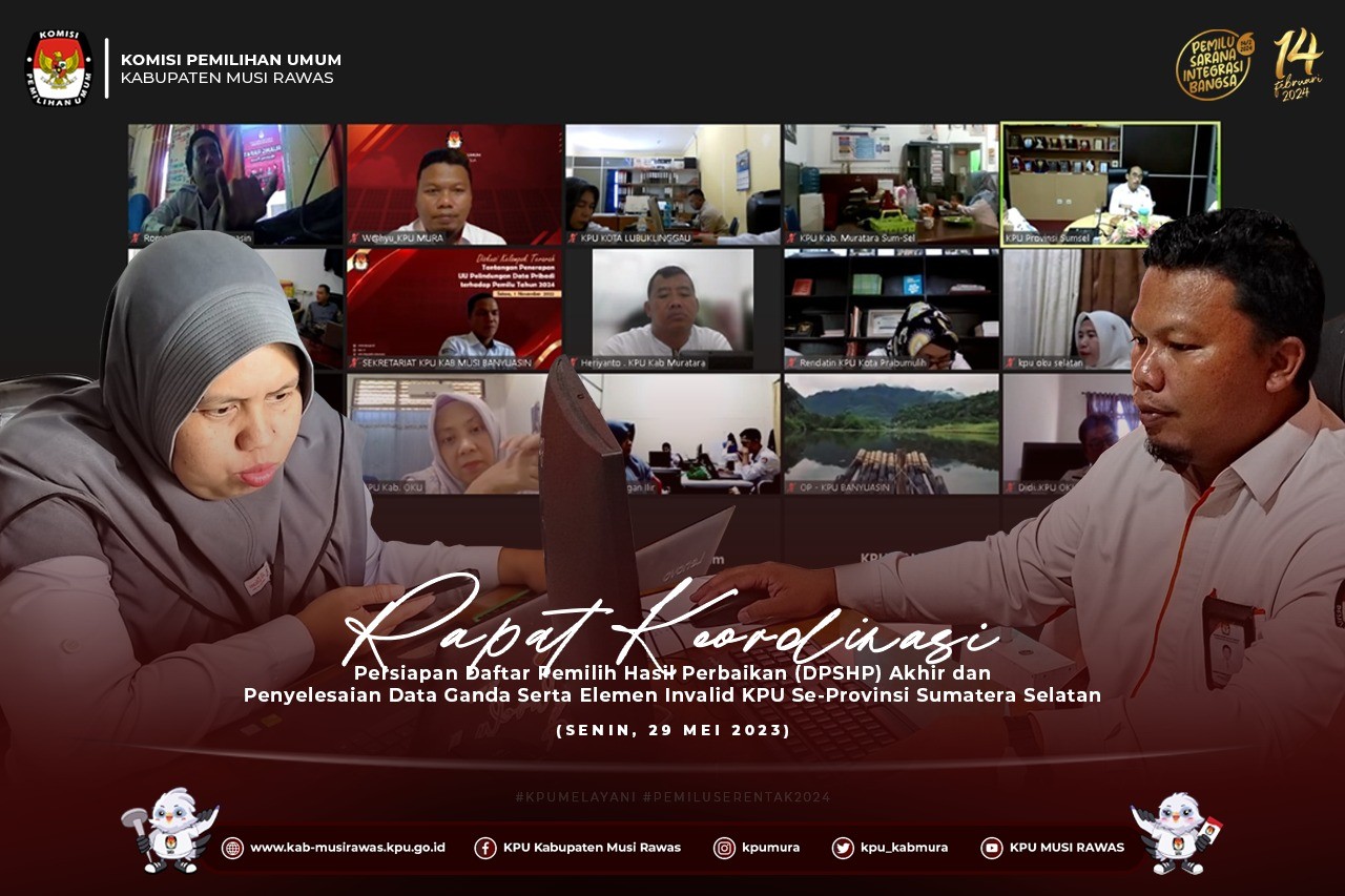 #TemanPemilih, KPU Kabupaten Musi Rawas mengikuti Rapat Koordinasi Persiapan Daftar Pemilih Hasil Perbaikan (DPSHP) Akhir dan Penyelesaian Data Ganda Serta Elemen Invalid KPU Se-Provinsi Sumatera Selatan secara daring (29/5/2023) ...