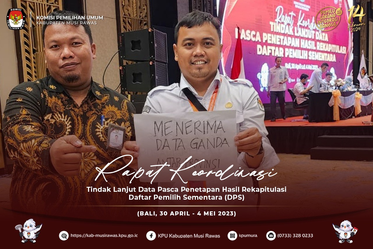 #TemanPemilih, KPU Kabupaten Musi Rawas menikuti Rapat Koordinasi Tindak Lanjut Data Pasca Penetapan Hasil Rekapitulasi Daftar Pemilih Sementara (DPS) yang berlangsung di Bali (30 April 2023 - 4 Mei 2023) ..