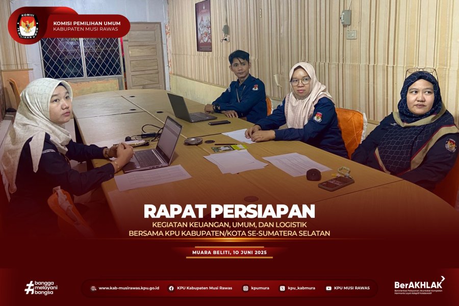 #TemanPemilih, KPU Kabupaten Musi Rawas mengikuti Rapat Persiapan Kegiatan Keuangan, Umum, dan Logistik KPU Kabupaten/Kota Se-Sumatera Selatan secara daring di Kantor KPU Kabupaten Musi Rawas (10/6/2025) ..