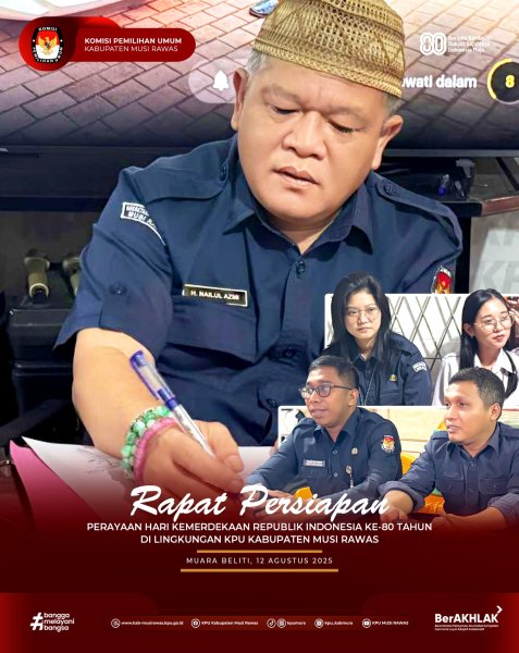 #TemanPemilih, Komisioner dan Sekretariat KPU Kabupaten Musi Rawas melaksanakan Rapat Persiapan Perayaan Hari Kemerdekaan Republik Indonesia Ke-80 Tahun di Kantor KPU Kabupaten Musi Rawas (12/8/2025) ..