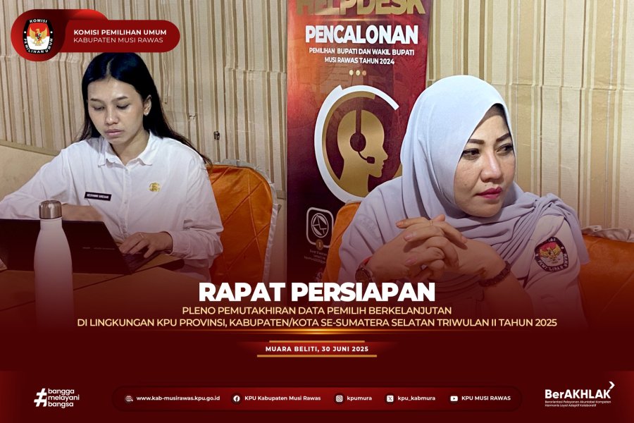 #TemanPemilih, KPU Kabupaten Musi Rawas mengikuti Rapat Persiapan Pleno Pemutakhiran Data Pemilih Berkelanjutan Triwulan II tingkat KPU Provinsi Sumatera Selatan secara daring di Kantor KPU Kabupaten Musi Rawas, Senin (30/6/2025).