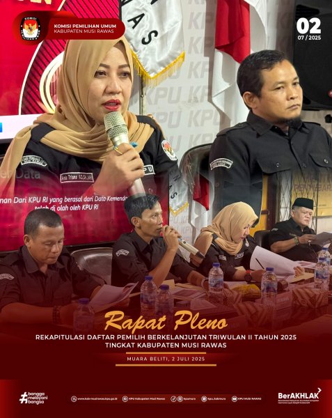 #TemanPemilih, KPU Kabupaten Musi Rawas melaksanakan Rapat Pleno Rekapitulasi Daftar Pemilih Berkelanjutan Triwulan II Tahun 2025 di Kantor KPU Kabupaten Musi Rawas (2/7/2025) ..