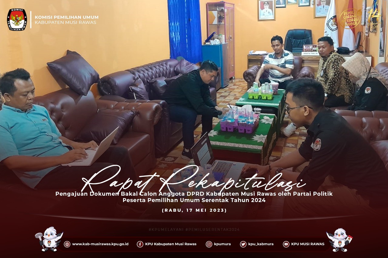#TemanPemilih, KPU Kabupaten Musi Rawas melaksanakan Rapat Rekapitulasi Pengajuan Dokumen Bakal Calon Anggota DPRD Kabupaten Musi Rawas oleh Partai PolitikPeserta Pemilihan Umum Serentak Tahun 2024 di Kantor KPU Kabupaten Musi Rawas (17/5/2023) ..