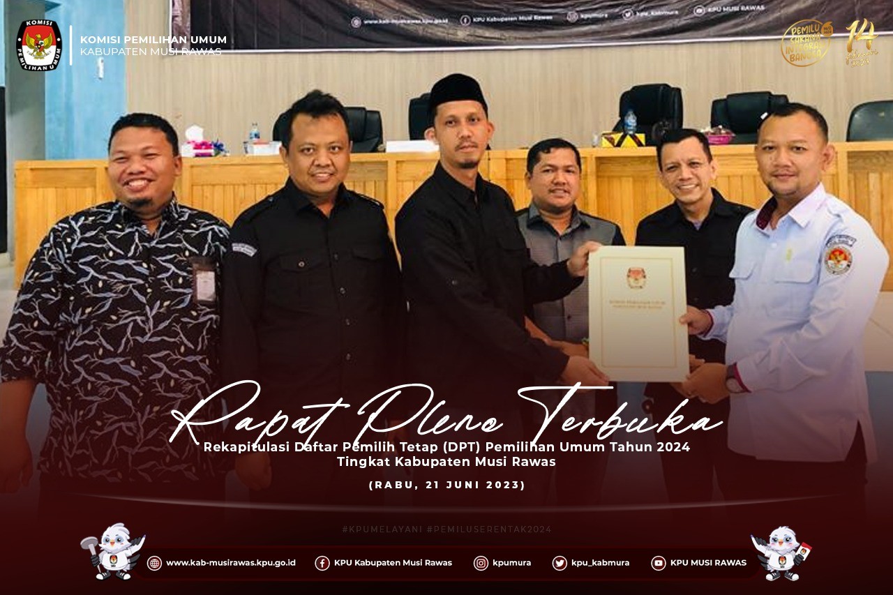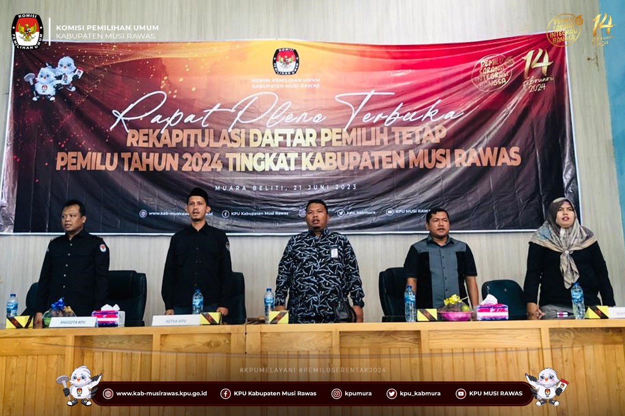 #TemanPemilih, KPU Kabupaten Musi Rawas melaksanakan Rapat Pleno Terbuka Rekapitulasi Daftar Pemilih Tetap (DPT) Pemilihan Umum Tahun 2024 Tingkat Kabupaten Musi Rawas di Gedung BLK Musi Rawas (21/6/2023) ..