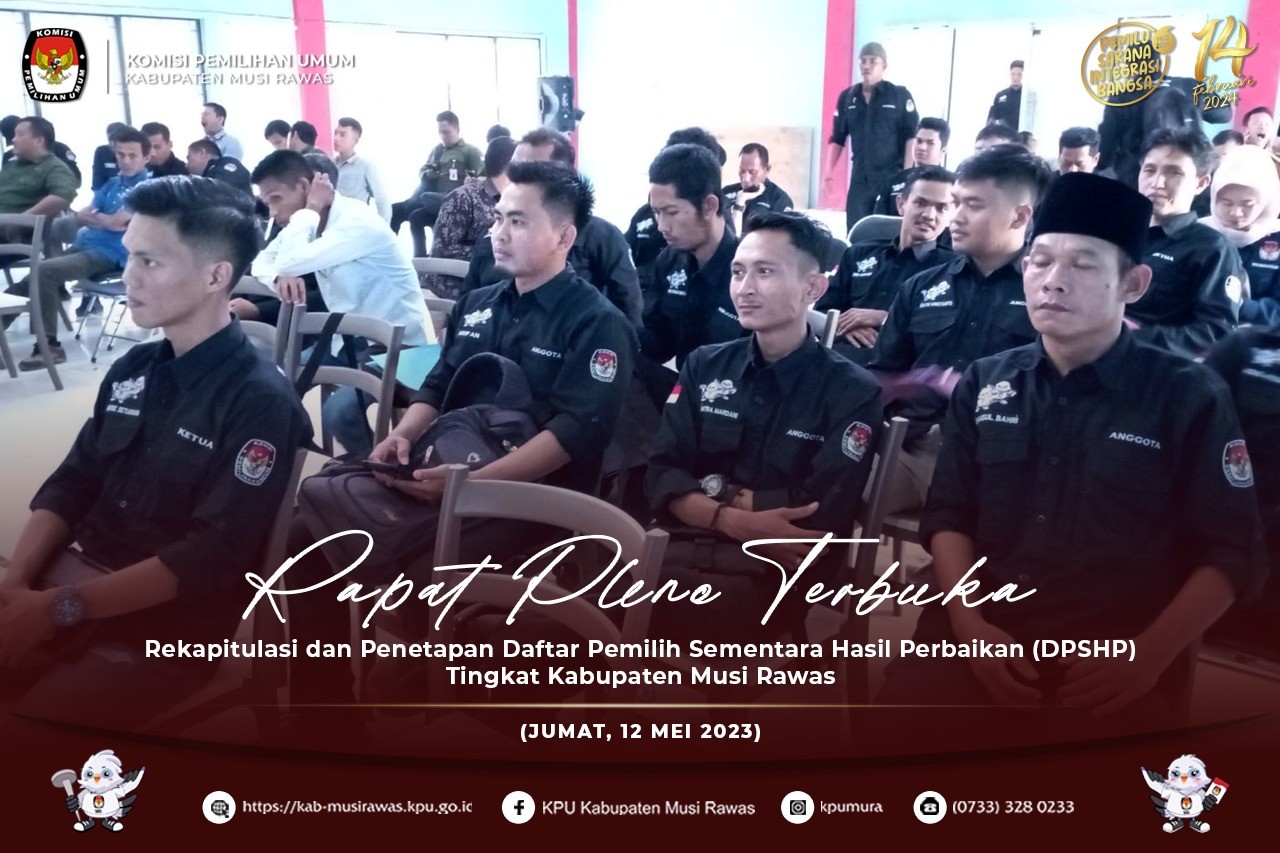 #TemanPemilih, KPU Kabupaten Musi Rawas melaksanakan Rapat Pleno Terbuka Rekapitulasi dan Penetapan Daftar Pemilih Sementara Hasil Perbaikan (DPSHP)Tingkat Kabupaten Musi Rawas (12/5/2023) ..