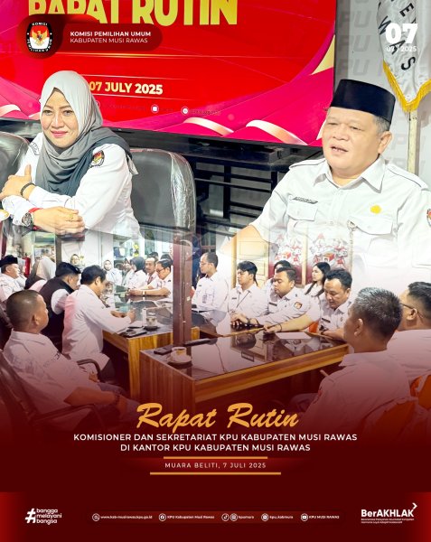 #TemanPemilih, KPU Kabupaten Musi Rawas melaksanakan Rapat Rutin di Kantor KPU Kabupaten Musi Rawas (7/7/2025) ..