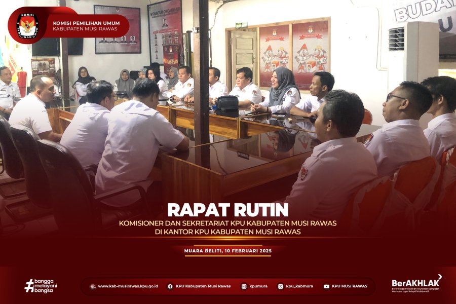 #TemanPemilih, Komisioner dan Sekretariat KPU Kabupaten Musi Rawas melaksanakan Rapat Rutin di Kantor KPU Kabupaten Musi Rawas (10/2/2025) ..