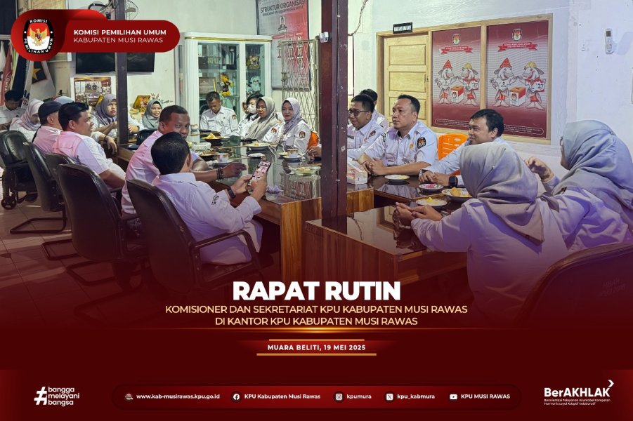 #TemanPemilih, Komisioner dan Sekretariat KPU Kabupaten Musi Rawas melaksanakan Rapat Rutin di Kantor KPU Kabupaten Musi Rawas (19/5/2025) ..