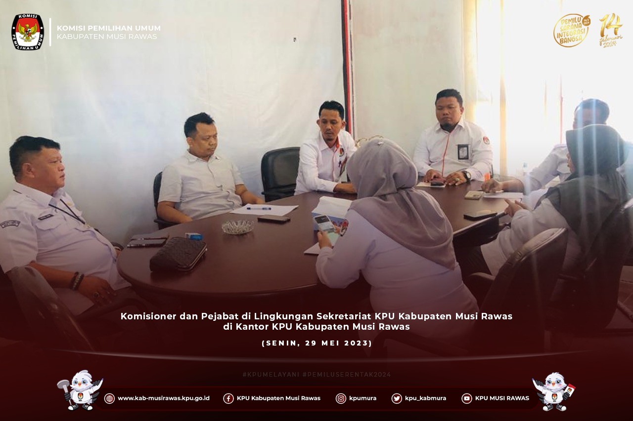 #TemanPemilih, Komisioner dan Pejabat di Lingkungan Sekretariat KPU Kabupaten Musi Rawas melaksanakan Rapat Rutin di Kantor KPU Kabupaten Musi Rawas (29/5/2023) ..