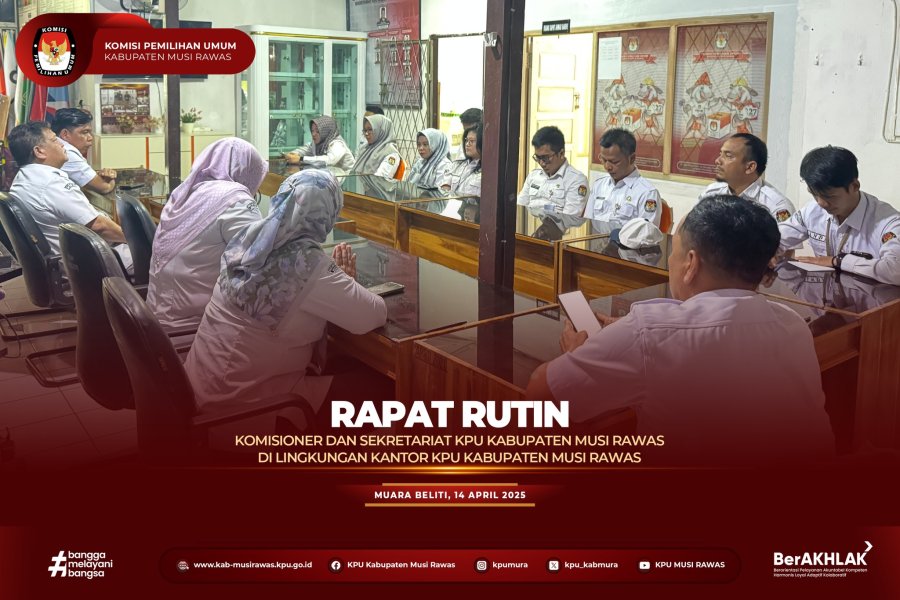 #TemanPemilih, Komisioner dan Sekretariat KPU Kabupaten Musi Rawas melaksanakan Rapat Rutn di Kantor KPU Kabupaten Musi Rawas (14/4/2025) ..