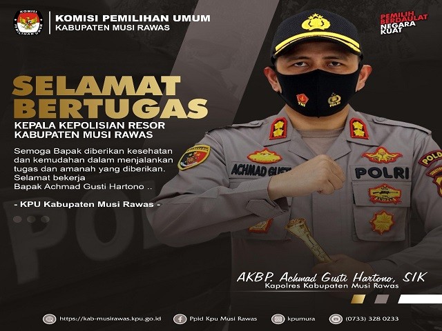 Selamat Bertugas Bapak AKBP. Achmad Gusti Hartono, S.I.K. sebagai Kapolres Kabupaten Musi Rawas. Semoga selalu diberikan kesehatan dan kemudahan dalam menjalankan tugas dan amanah.