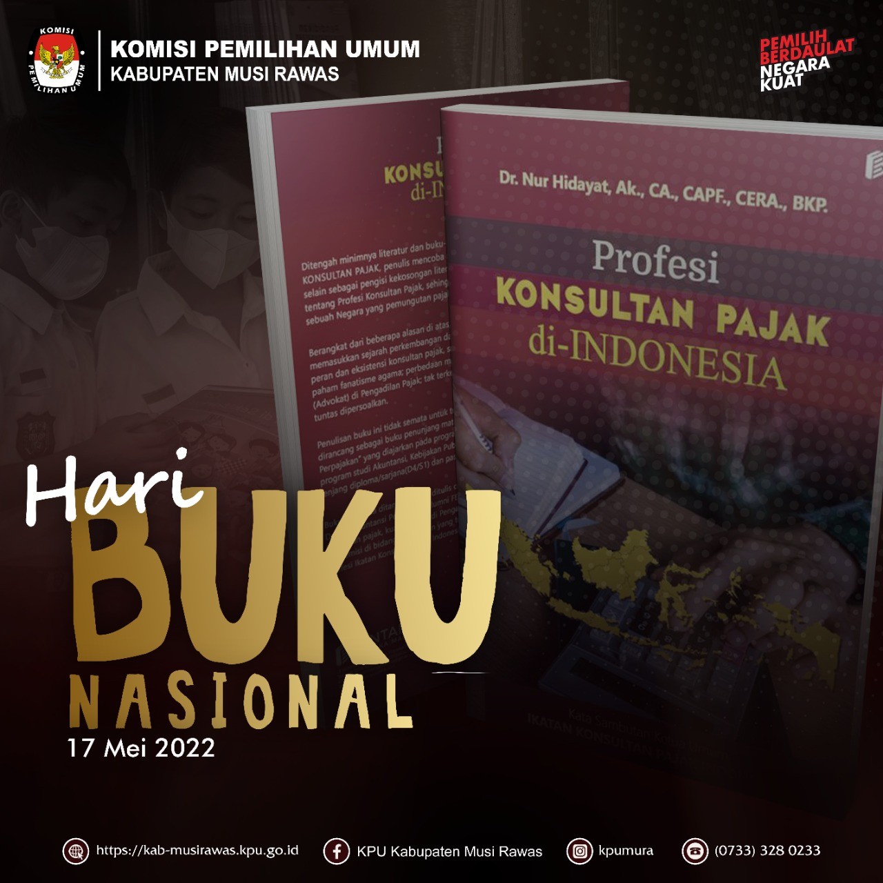 #TemanPemilih KPU Kabupaten Musi Rawas mengucapkan Selamat Hari Buku Nasional 17 Mei 2022....Selalu budayakan membaca buku karena buku adalah gudang ilmu. #KPUMelayani #PemiluSerentak2024