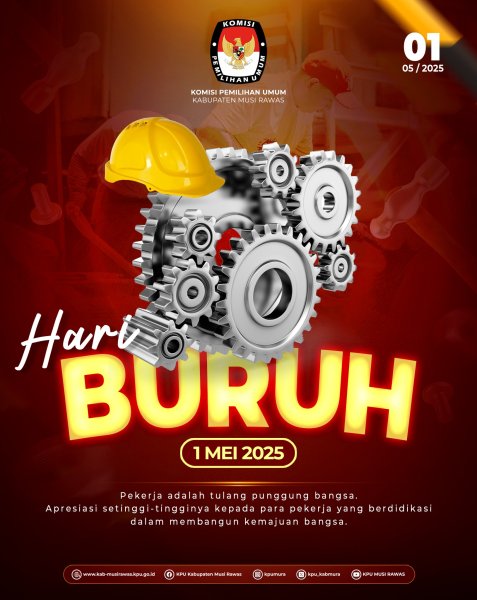 #TemanPemilih, segenap jajaran KPU Kabupaten Musi Rawas mengucapkan Selamat Hari Buruh Internasional (1/5/2025) ..