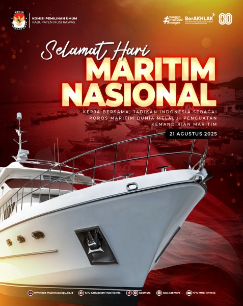 #TemanPemilih, segenap jajaran KPU Kabupaten Musi Rawas mengucapkan Selamat Hari Maritim Nasional Tahun 2025 (21/8/2025) ..