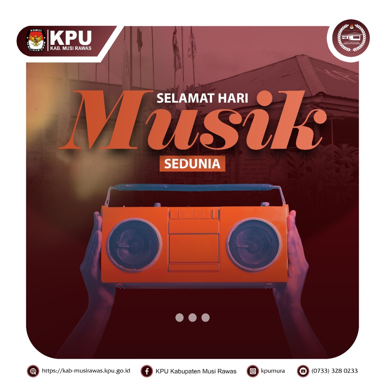 KPU Kab. Musi Rawas mengucapkan "Selamat Hari Musik Sedunia".Dengan adanya musik hidup lebih berwarna dan lebih ceria. Semoga para musisi musik di dunia terus berkarya demi menghibur para pecinta musik...