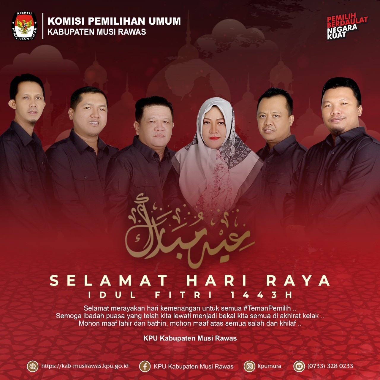 #TemanPemilih Segenap keluarga besar KPU Kabupaten Musi Rawas mengucapkan Selamat Hari Raya Idul Fitri 1443 H. Minal aidin wal faidzin mohon maaf lahir dan batin... #PemiluSerentak2024 #KPUMelayani #idulfitri1443H