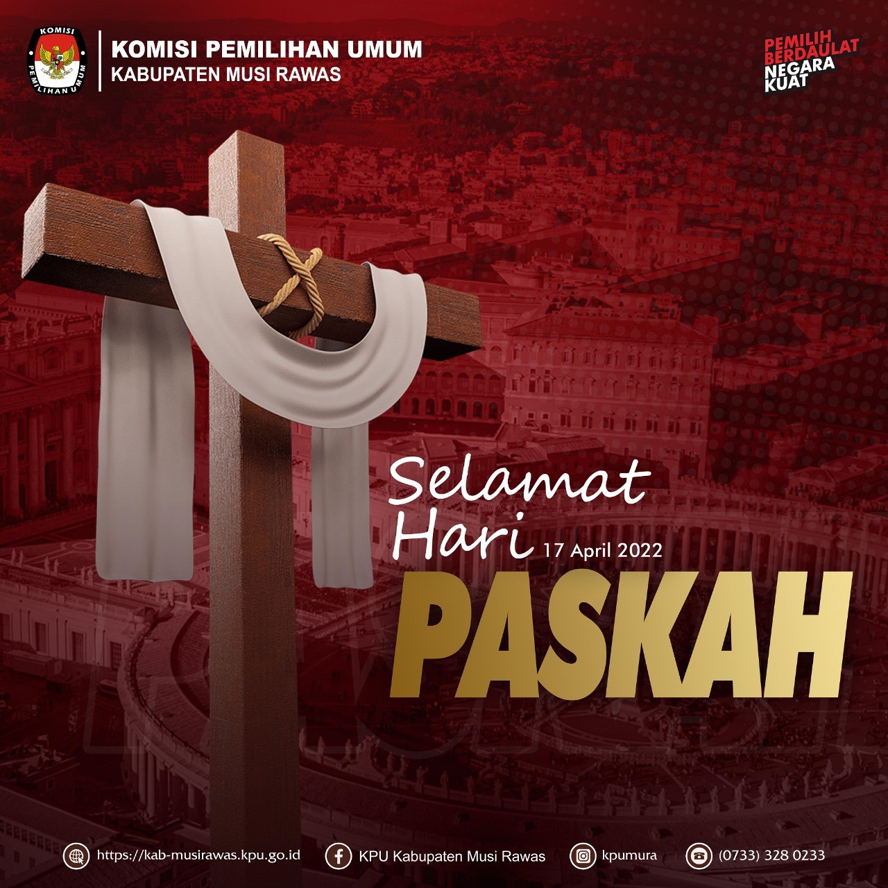 #TemanPemilih Segenap keluarga besar KPU Kabupaten Musi Rawas mengucapkan Selamat Hari Raya Paskah bagi teman pemilih yang merayakan, semoga kebangkitanNya selalu menjadi iman dan kepercayaan kita.. #HappyEaster #KPUMelayani #pemiluserentak2024