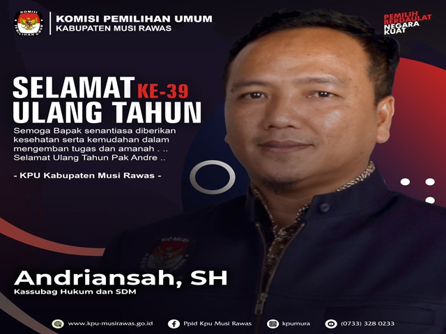 Selamat Hari Ulang Tahun Andriansah S.H. (Sub Koordinator Bagian Hukum dan Sumber Daya Manusia)...