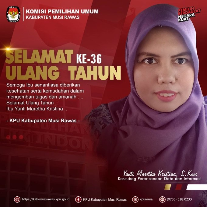 Selamat Hari Ulang Tahun Ibu Yanti Maretha Kristina, S.Kom.. Semoga selalu diberikan kesehatan dan kemudahan dalam menjalankan tugas dan amanah..