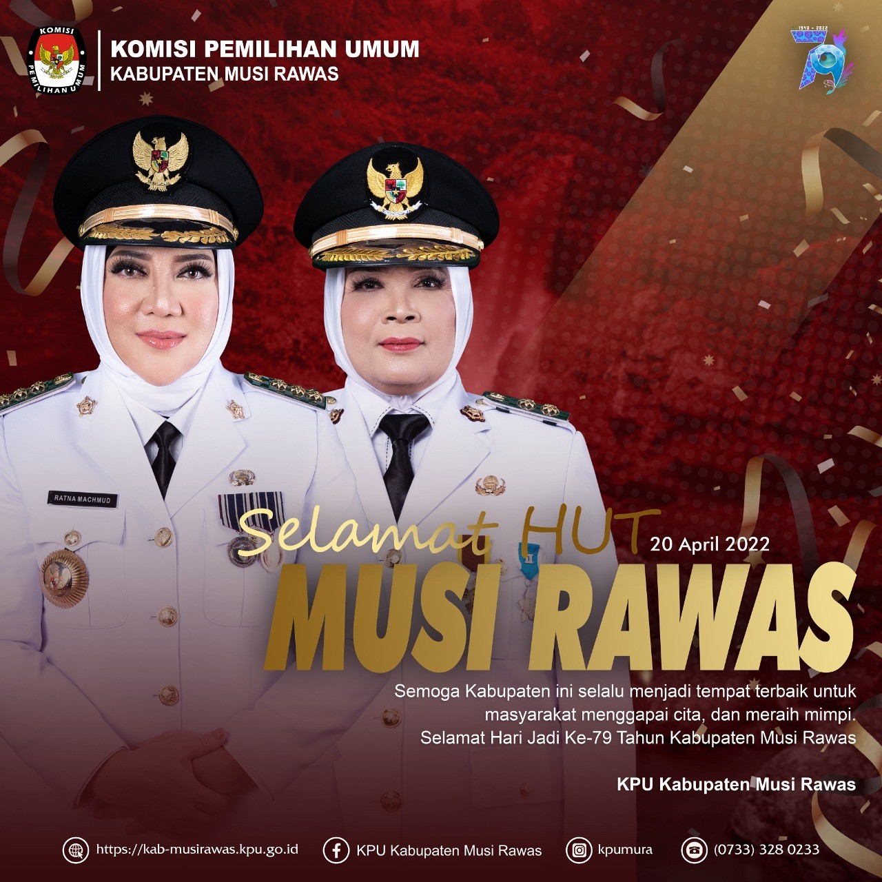 #TemanPemilih Segenap keluarga besar KPU Kabupaten Musi Rawas mengucapkan Selamat Hari Jadi Kabupaten Musi Rawas yang ke-79 tahun.. #KPUMelayani #PemiluSerentak2024