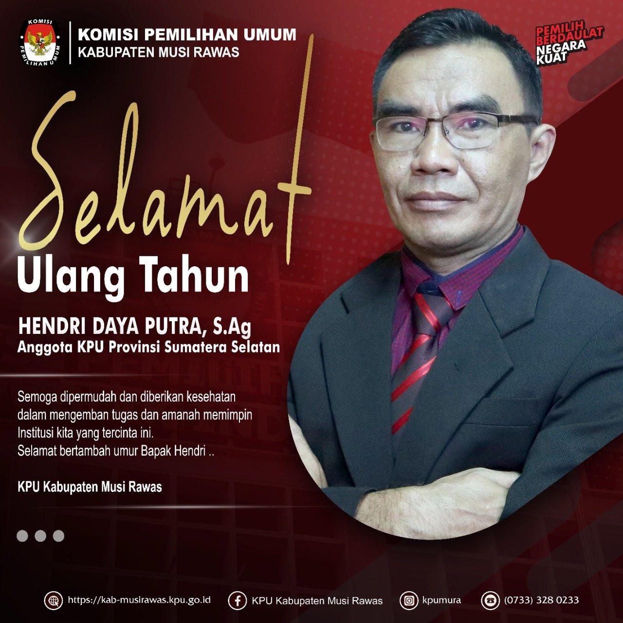Selamat Ulang Tahun Bapak Hendri Daya Putra, S.Ag (Anggota KPU Provinsi Sumatera Selatan)