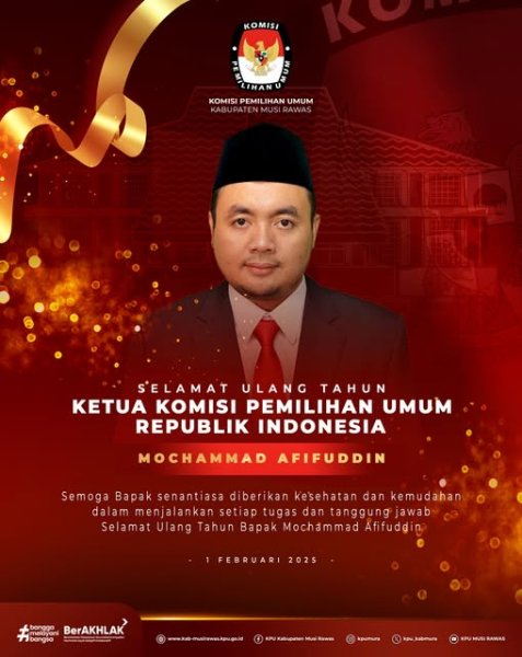 #TemanPemilih, segenap jajaran KPU Kabupaten Musi Rawas mengucapkan selamat ulang tahun kepada Bapak Mochammad Afifuddin (Ketua KPU Republik Indonesia) ..