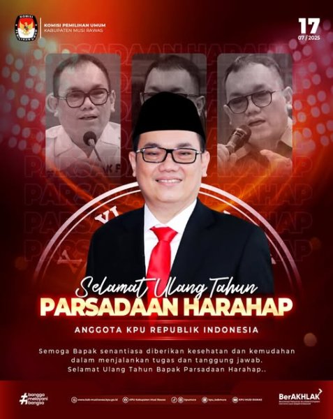 #TemanPemilih, segenap jajaran KPU Kabupaten Musi Rawas mengucapkan selamat ulang tahun kepada Bapak Parsadaan Harahap (Anggota KPU Republik Indonesia) ..