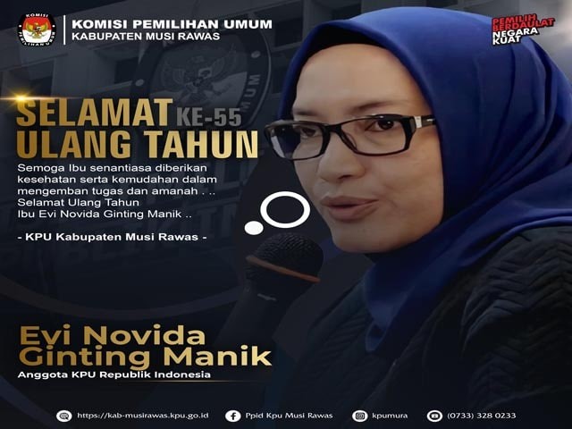 Selamat Ulang Tahun Ibu Evi Novida Ginting Manik (Anggota Komisi Pemilihan Umum Republik Indonesia)..