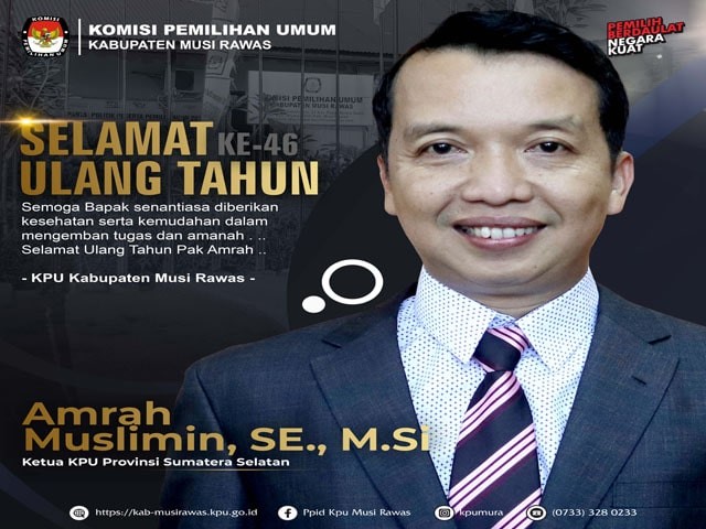 Selamat Ulang Tahun Ketua KPU Provinsi Sumatera Selatan, Bapak Amrah Muslimin S.E.,M.Si